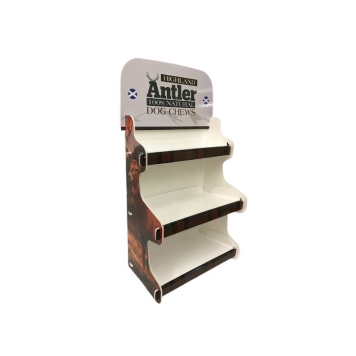 Præsenter jeres Antlers på en pæn måde i klinikken eller butikken med denne fine Displaykasse. Har tre hylder, så der er en hylde til hver størrelse. Mål: Højde = 53 cm Bredde = 30 cm Dybde = 16 cm
