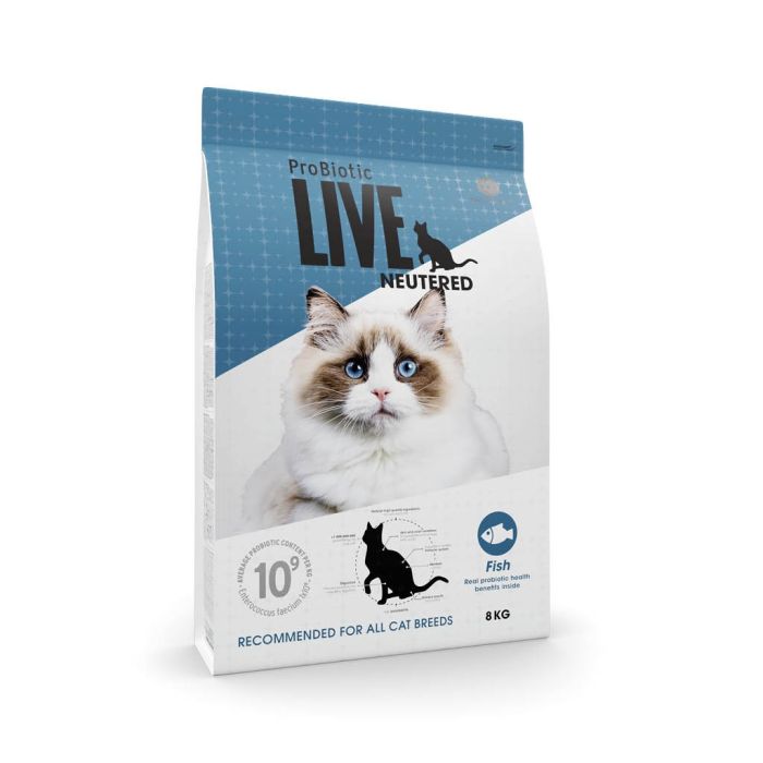 Probiotika er dokumenteret at kunne støtte kattens fordøjelse, optimere næringsoptaget, nedsætte risikoen for foderintolerancer og forbedre hud og pels. Udover de tilsatte mælkesyrebakterier, indeholder ProBiotic LIVE Adult Neutered Fisk et højt indhold af kød, hvilket sikrer den bedste proteinkilde. Foderet er baseret på råvarer af højeste kvalitet og en tilførsel af omega fedtsyrer der gavner kattens hud og pels.