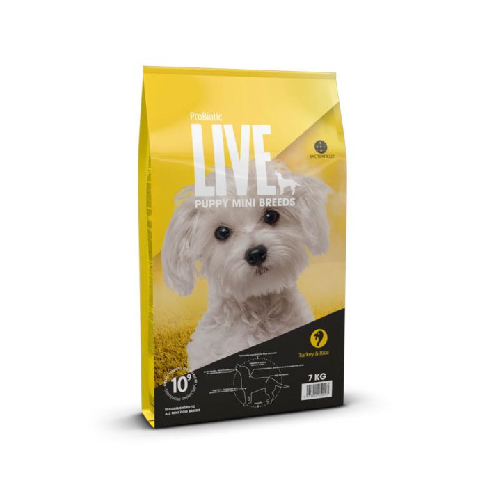 Probiotic LIVE er et Super Premium komplet hvalpetørfoder af bedste kvalitet med Kalkun. Denne variant er præcist afbalanceret og skræddersyet til hvalpe i vækst og henvender sig til racer med en voksenvægt på under 10 kg. Foderet har god smag og er baseret på naturlige ingredienser uden tilsætning af farvestoffer og konserveringsmidler. Pillen er ligeledes designet til den mindre hvalp og er tilpasset i størrelsen.