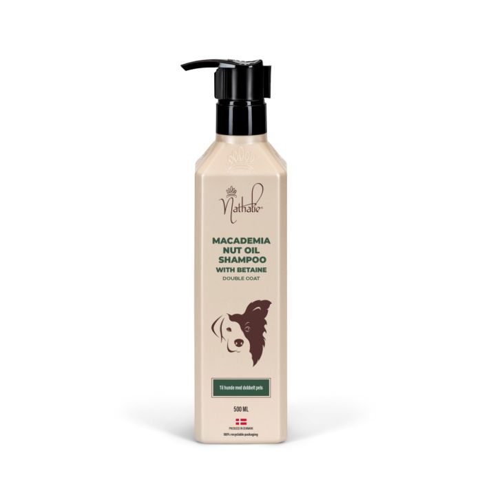 Nathalie Macadamia Nut Oil Shampoo er oplagt til hunde med dobbeltpels – altså både underuld og dækhår. Produktet medvirker til volume, fylde og glans uden at tynge pelsen.